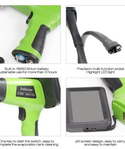 Bộ dụng cụ vệ sinh dàn lạnh ô tô tích hợp camera nội soi Endoscope là giải pháp hiện đại giúp làm sạch dàn lạnh mà không cần tháo rời, hỗ trợ quan sát trực tiếp bên trong thông qua màn hình camera. Thiết bị sử dụng khí nén kết hợp dung dịch vệ sinh, giúp loại bỏ bụi bẩn, nấm mốc trong dàn lạnh, đồng thời khử mùi và tạo hương thơm cho khoang nội thất.