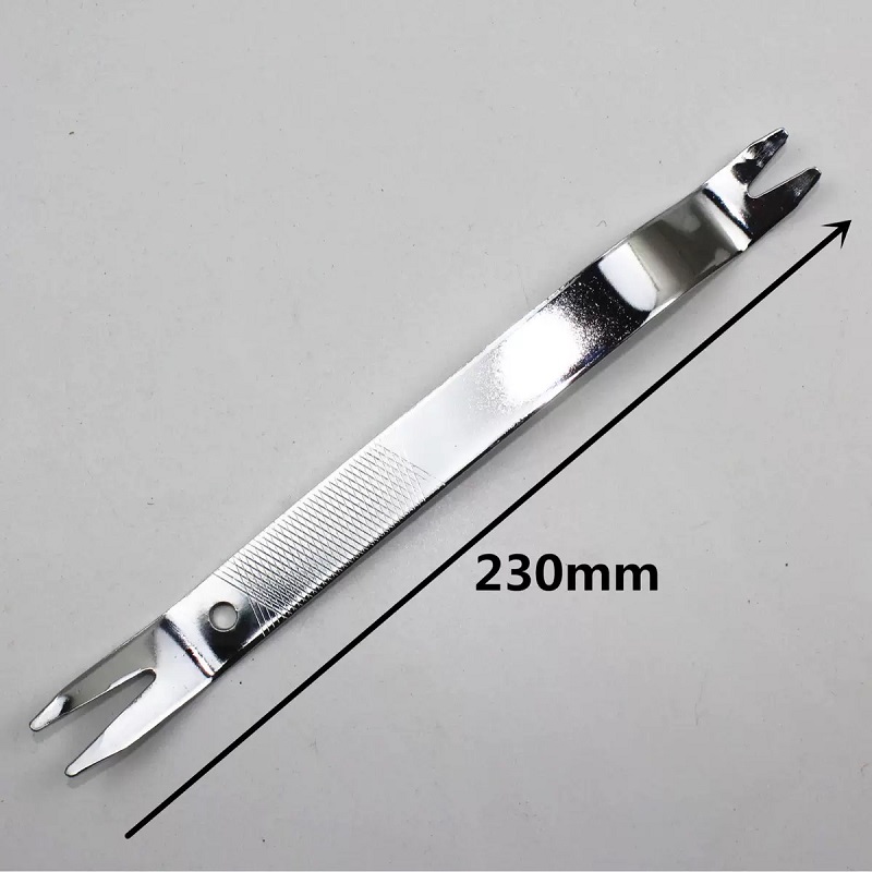 Cây Cậy Táp Lô Táp Bi Bậy Chốt Nhựa Bằng Inox Loại Dài là dụng cụ không thể thiếu đối với thợ lắp đặt nội thất, âm thanh, hoặc sửa chữa điện – điện tử ô tô. Sản phẩm chuyên dụng để tháo các chốt nhựa, nở cài, và bậy các chi tiết lớn như táp bi cửa (táp ly), táp lô một cách nhanh chóng và an toàn. Với chất liệu Inox cao cấp và thiết kế 2 đầu đa năng, dụng cụ này giúp hạn chế tối đa việc làm trầy xước các chi tiết nhựa và da bọc nội thất xe.