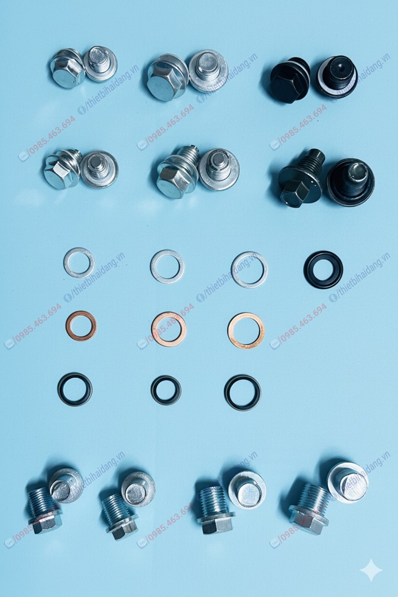 Ốc xả dầu tiêu chuẩn (các cỡ ren M12x1.25, M14x1.5, M16x1.5, v.v.).