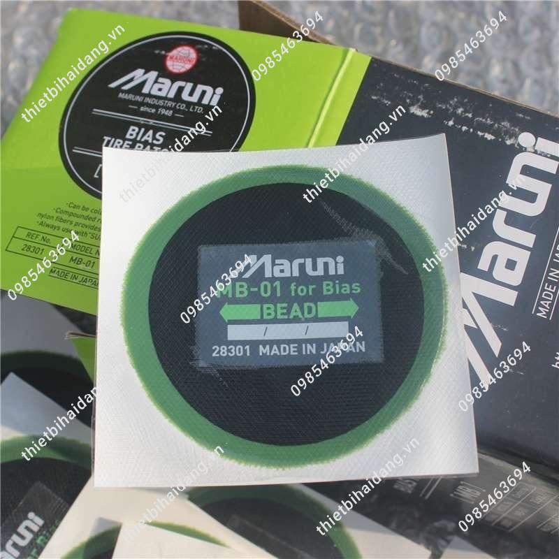 Miếng vá lốp Maruni là thương hiệu miếng vá vá số 1 tại Nhật bản nói riêng và một trong những loại miếng vá tốt nhất thế giới nói chung.Miếng vá lốp Maruni luôn đảm bảo mọi yêu cầu khắt khe nhất, với độ bền cao, chất lượng vượt trộị, phù hợp với mọi loại xe và được rất nhiều người tin dùng.