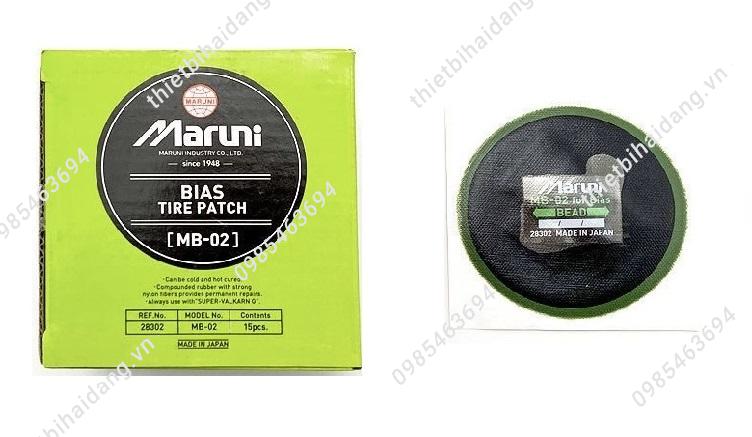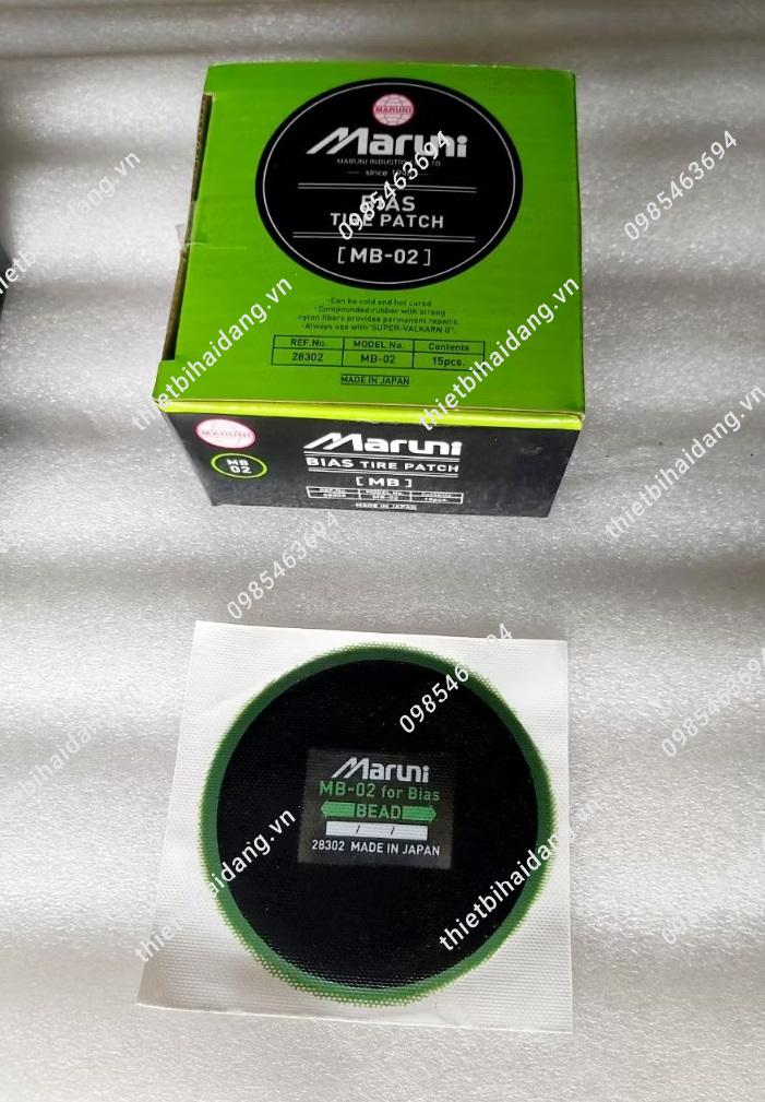 Miếng vá lốp Maruni là thương hiệu miếng vá vá số 1 tại Nhật bản nói riêng và một trong những loại miếng vá tốt nhất thế giới nói chung.Miếng vá lốp Maruni luôn đảm bảo mọi yêu cầu khắt khe nhất, với độ bền cao, chất lượng vượt trộị, phù hợp với mọi loại xe và được rất nhiều người tin dùng.