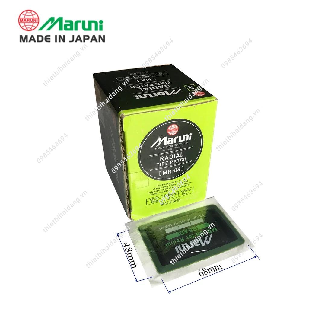 Miếng vá lốp Maruni là thương hiệu miếng vá vá số 1 tại Nhật bản nói riêng và một trong những loại miếng vá tốt nhất thế giới nói chung.Miếng vá lốp Maruni luôn đảm bảo mọi yêu cầu khắt khe nhất, với độ bền cao, chất lượng vượt trộị, phù hợp với mọi loại xe và được rất nhiều người tin dùng.